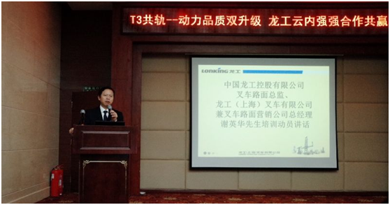 中国龙工控股有限公司叉车路面总监谢英华先生作发动讲话